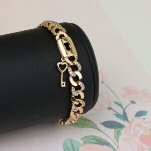 "Rose Gold Heart Lock Key Charm Bracelet with Sparkling Links, XPBL0914