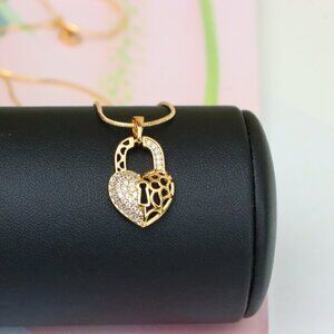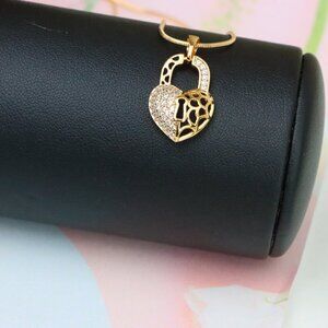 "Rose Gold Heart Lock Pendant with Crystal Accents and Cutout Design, XPPT1252