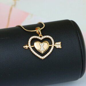 "Rose Gold Heart Pendant with Arrow and Sparkling Bear Design, XPPT1510