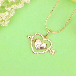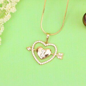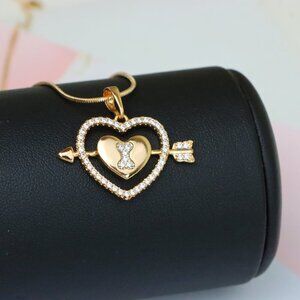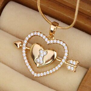 "Rose Gold Heart Pendant with Arrow and Sparkling Bear Design, XPPT1510