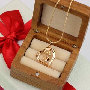 ✔️ Elegant rose gold finish with a symbolic heart and baby footprint