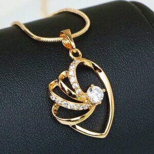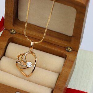 Elegant and romantic, this rose gold heart pendant features a sparkling CZ centerpiece and a graceful open swirl design—perfect for daily wear or gifting.