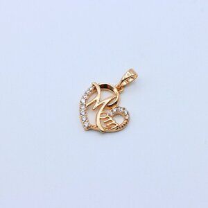 "Rose Gold Heart Pendant with Sparkling 'Mom' Letter Design, XPPT1241