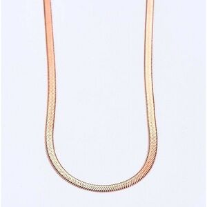 Rose gold plated flat Herringbone snake necklace. Necklace measures 18”.