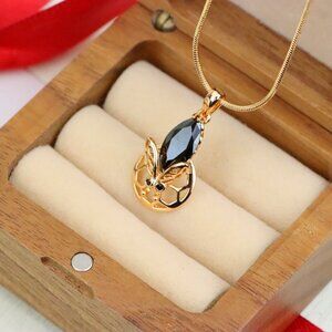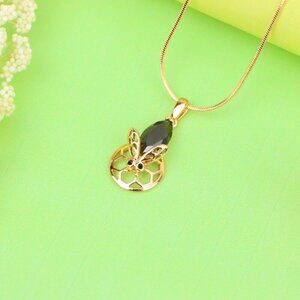 "Rose Gold Honeycomb Butterfly Pendant with Black Gem, XPPT1314