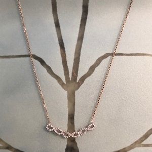 This necklace is in pristine condition. The necklace measures 16" long. The metal is Rose Gold over .925 sterling silver.