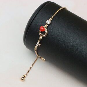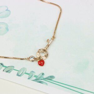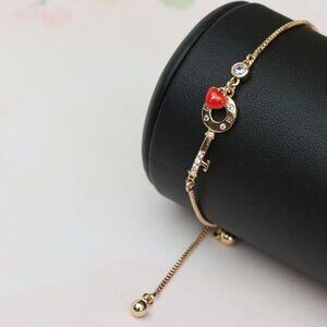 Elevate your style with this charming Rose Gold A-Bracelet, featuring a delicate key and red heart charm for a playful, elegant touch.