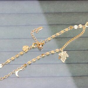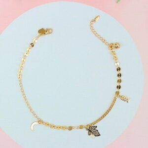 "Rose Gold Leaf Charm Anklet with Moon Pendant, XPAL1184
