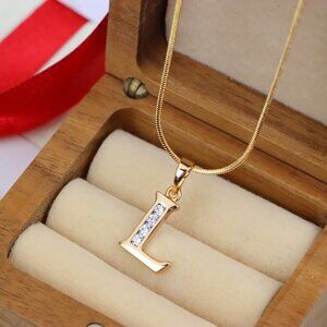 "Rose Gold Letter L Pendant with Crystals – 18K Gold Plated Charm, XPPT1361