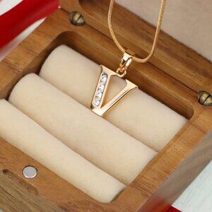 "Rose Gold Letter V Pendant with Sparkling Crystals – Chic Jewelry, XPPT1371