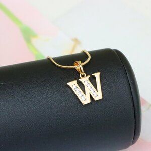 "Rose Gold Letter W Pendant with Crystals – Elegant Personalized Charm,XPPT1372