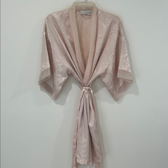 Luxurious blush satin robe. Ideal for lounging. Soft and elegant design. Light and airy, very romantic!