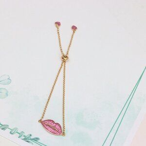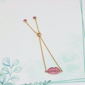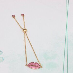 Add a touch of playful elegance with this stunning rose gold bracelet featuring a sparkling pink lips charm.