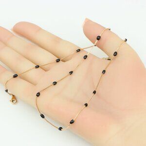 Elegant and meaningful, this rose gold mangalsutra necklace features traditional black beads with a modern delicate chain design.