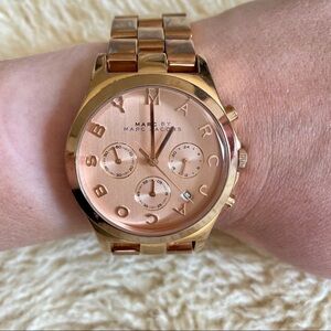 Rose Gold Marc Jacobs watch. The bracelet has scratches but I feel like it makes it look more "vintage"