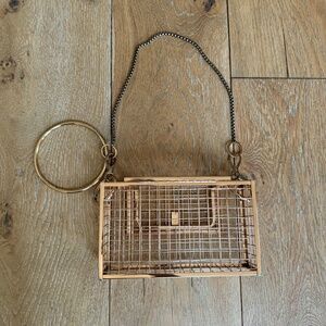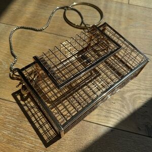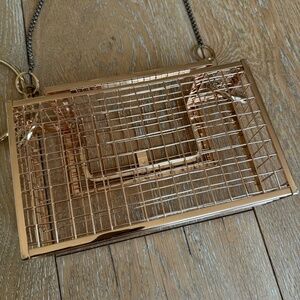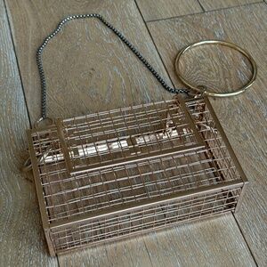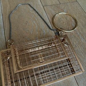 Martine Ali cage bag in very rare rose gold color. Comes with gold ring & clip attachment and slim silver chain. Chains and accessories can be swapped out for any other or can be removed to make the bag perform as a clutch. Barely used and in excellent condition.