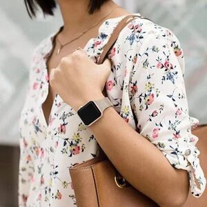 Elegant and modern, this rose gold mesh band smartwatch is perfect for any occasion. Its sleek design and sophisticated color make it a must-have accessory. Love it but ready for something new. Excellent condition.