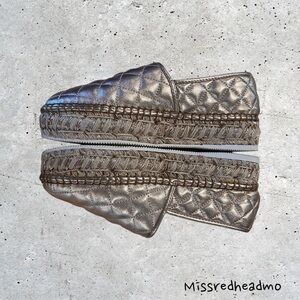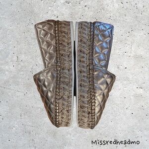 Stylish metallic slip-on shoes with a quilted design. Perfect for casual wear. Only worn once as shown on the heel of the shoes.
