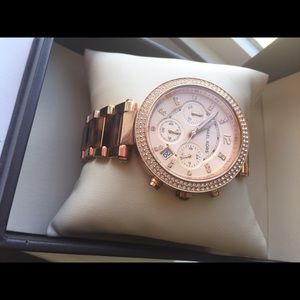 I had a Michael Kors watch and a jeweler broke it trying to size it for me so I got this brand new one. I only wore it once. I do not have the actual box it came in or tags but it is in perfect condition! No scratches or cracks! It is beautiful! Rose gold and tortoise band.