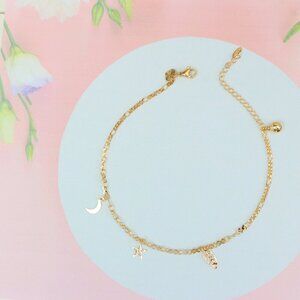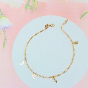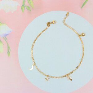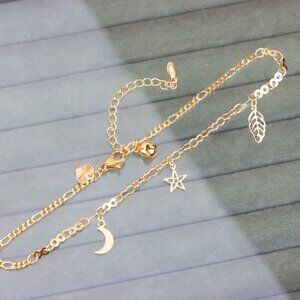 "Rose Gold Moon & Star Anklet with Leaf Charm, XPAL1182
