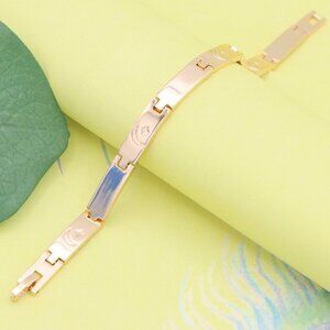 Elegant rose gold bracelet featuring crescent moon and star accents, crafted with precision in a smooth polished link design.
