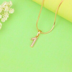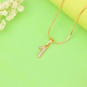 Elegant rose gold pendant in the shape of number ""1"", adorned with sparkling crystals. Crafted with high-quality brass and finished in luxurious 18K gold plating.