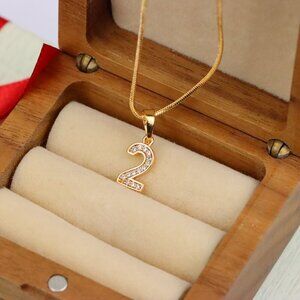 "Rose Gold Number 2 Pendant with Crystals – 18K Gold Plated Charm, XPPT1342