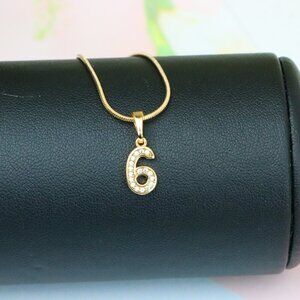 "Rose Gold Number 6 Pendant with Crystals – 18K Gold Plated Charm, XPPT1346