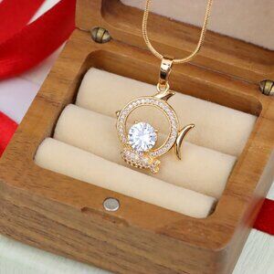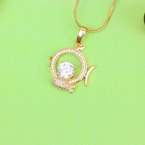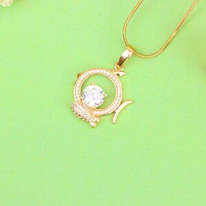 Elegant Pisces zodiac pendant with shimmering cubic zirconia and symbolic fish motif.