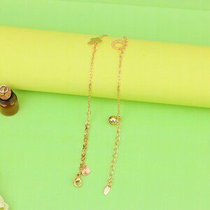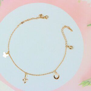 Elegant rose gold anklet crafted in high-quality brass with delicate butterfly, circle, and charm accents.