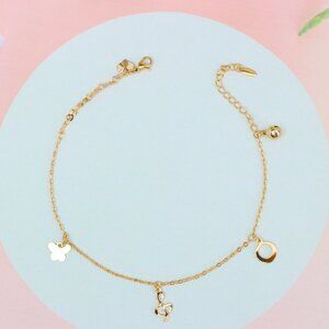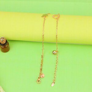 Elegant rose gold anklet crafted in high-quality brass with delicate butterfly, circle, and charm accents.