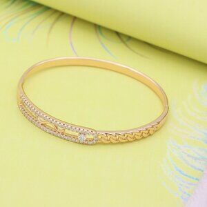 "Rose Gold Plated Bangle with Dual Row Crystal Detailing, XPBL0480