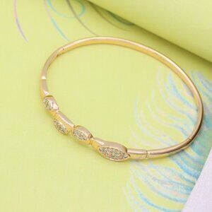 "Rose Gold Plated Bangle with Leaf-Inspired Sparkling Design, XPBL0552