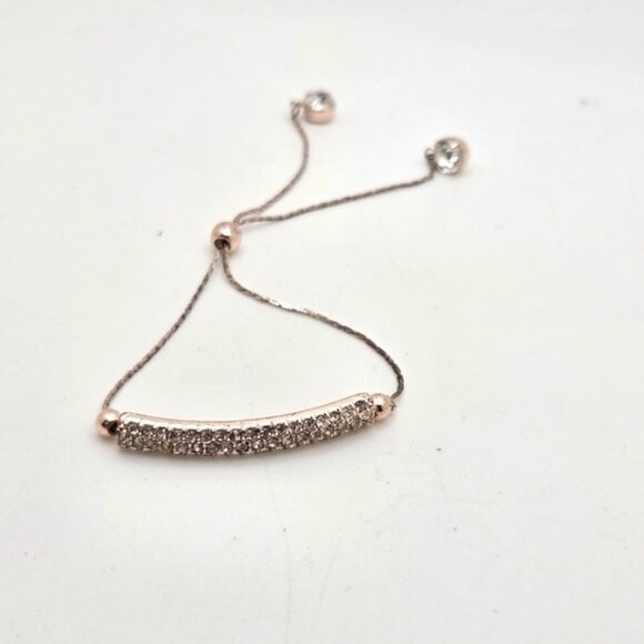 Rose Gold Plated Bar Plaque Bolo Bracelet Crystal Accents