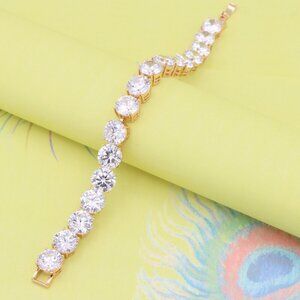 Elegant and eye-catching rose gold bracelet featuring bold, round-cut stones for a statement look. Perfect for parties or special occasions.