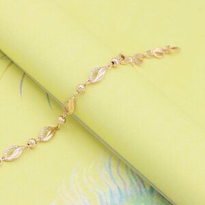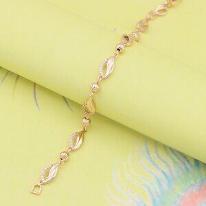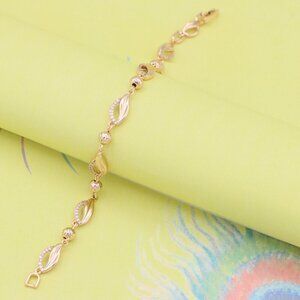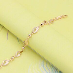 "Rose Gold Plated Elegant Leaf & Bead Chain Bracelet, XPBL0975