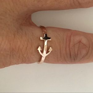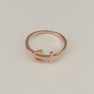 Rose Gold Plated Sterling Silver Anchor Ring, Silverer Rings, Boat Ring, Cross