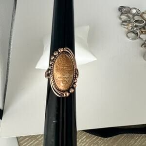 Rose Gold Plated Sterling Silver Jasper Stone Statement Bezel Ring US 6.75
