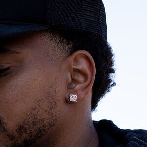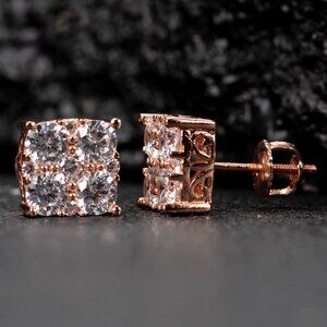 Square Rose Gold Round Pointer Flower Set Cluster Earring For Men: The cluster earrings for men are designed with a screw back post, ensuring they stay securely on your ears. The earrings studs for men are an excellent addition to your hip hop jewelry collection.