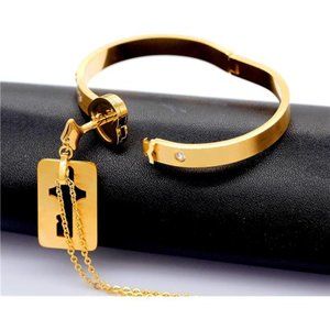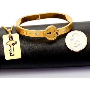 ♥ Lock Bangle and Key Necklace---Unique design with a lock bracelet and a square key necklace jewelry set. Romantic matching couples jewelry symbolize that only this key will open up the heart lock.