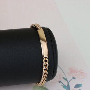 This chic rose gold bracelet features a high-shine ID bar paired with a pave Cuban chain, offering a modern, elegant look perfect for everyday glam or gifting.