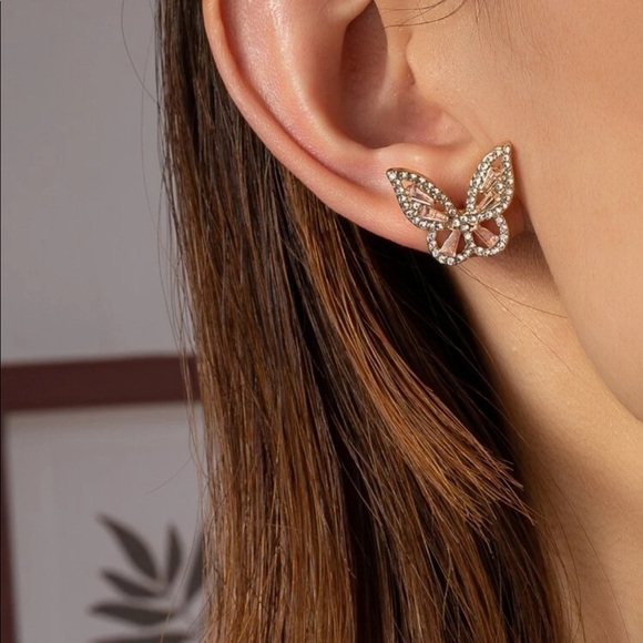 Rose Gold Rhinestone Butterfly Stud Earrings