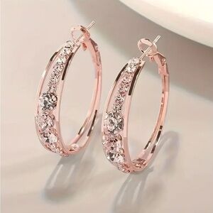 Rose Gold Rhinestone Hoop Earrings