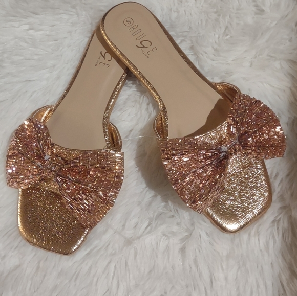 Rose Gold Rhinestone Square Toed Sandals New