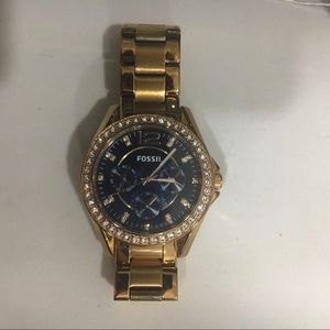 Rose gold watch with navy face. Still have the spare links and pins so it can be resized. It does need a new battery