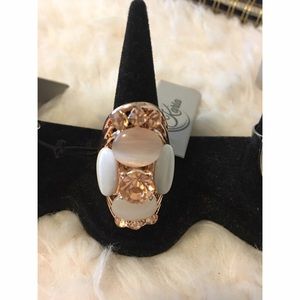 Rose Gold Ring with Rose Quartz and Topaz Stones.