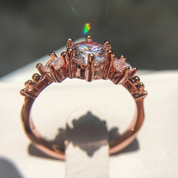 Material: BRASS + 3A Zircon Plating: Rose Gold Plated Size 7