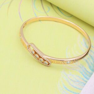 "Rose Gold Roman Numeral Bangle with Crystal Bar, XPBL0571 Add timeless charm to your collection with this rose gold bangle, featuring Roman numeral engraving and a unique crystal-studded centerpiece. ✓ Crafted from gold-plated high-quality brass for lasting durability ✓ Roman numeral design adds a classic, vintage-inspired touch ✓ Center bar encrusted with sparkling crystals for extra elegance ✓ Comfortable fit for wrist size up to 2.36 inches (6 cm) ✓ Great for gifting or enhancing your daily accessories"