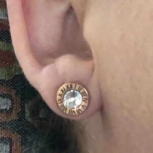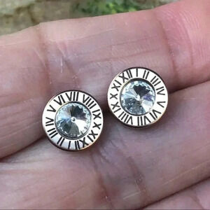 Rose Gold Roman Numerals Designer Style AAA Zircon Stud Earrings NWT