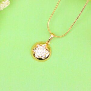 This elegant round pendant features a sparkling star-shaped CZ cluster at the center, finished in radiant gold plating over high-quality brass.